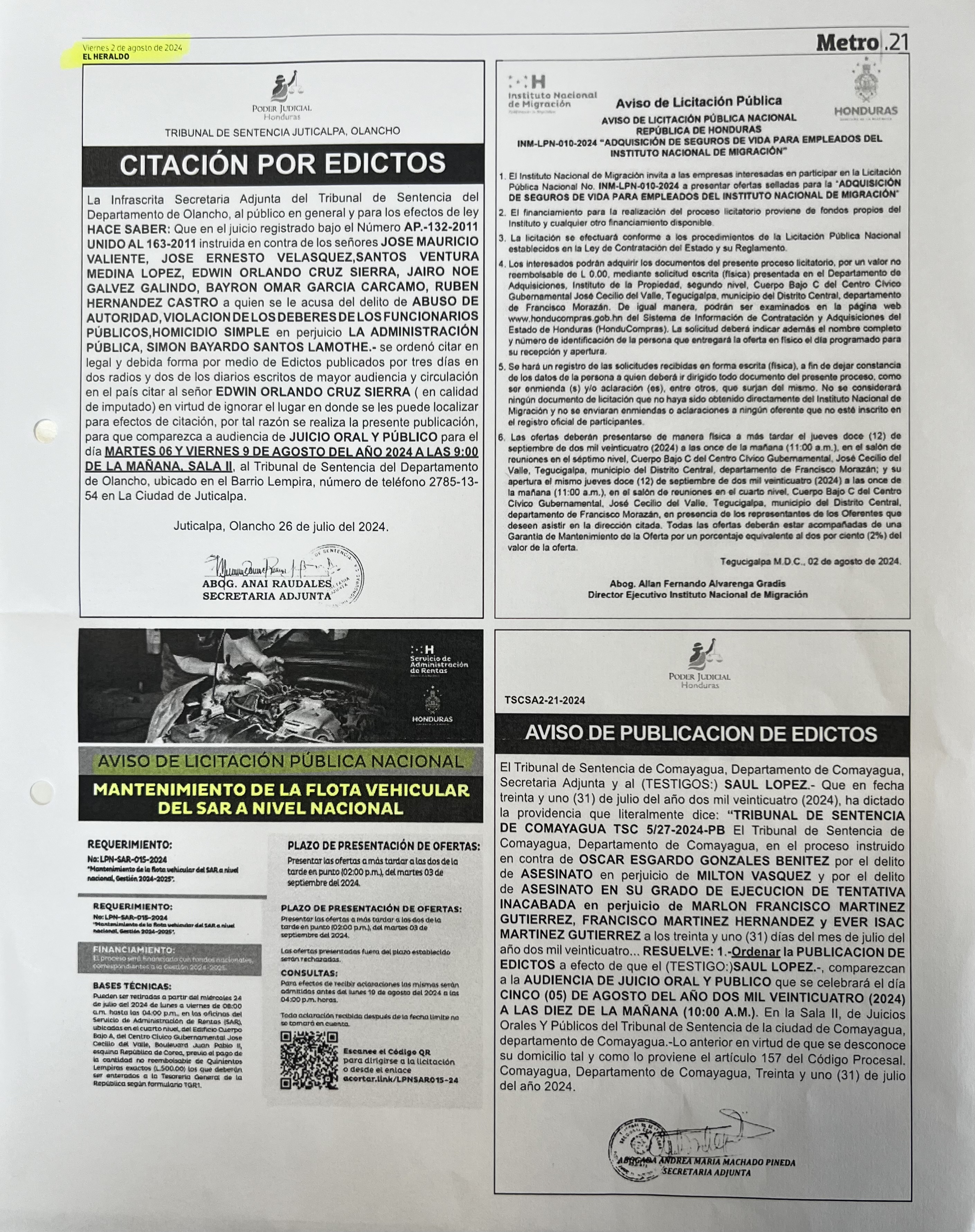 | Fecha Cierre Aclaratorias | 19/08/2024 04:00:00 p.m. |